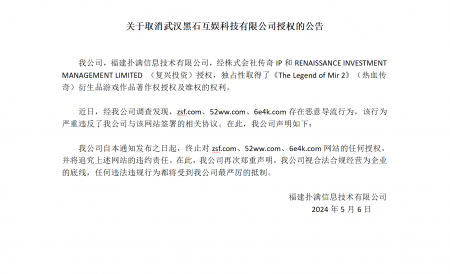 202405-18在线购买世界杯信息技术有限公司(以下简称“我司”)经株式会社传奇IP 、RENAISSANCE INVESTMENT MANAGEMENT LIMITED (复兴投资...