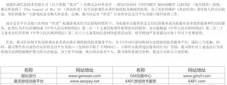 我公司,在线购买世界杯信息技术有限公司,经株式会社传奇IP和RENAISSANCE INVESTMENT MANAGE...